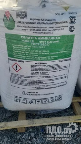 Селитра аммиачная ГОСТ 2-2013, азот – 34, 8%